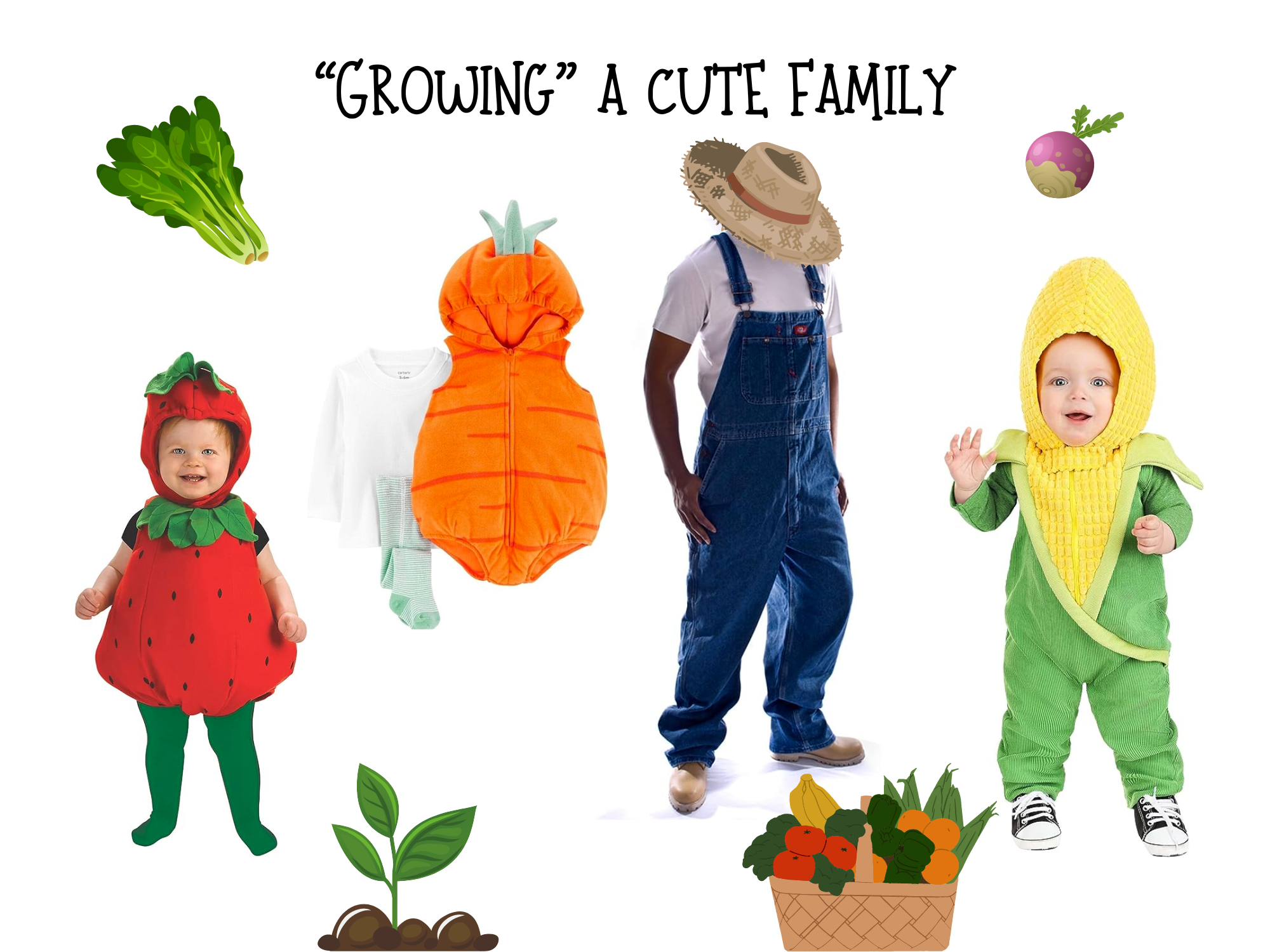 You have grown a beautiful family! You can lean into that metaphor by “growing” your produce children as farmers! Your little ones will look so cute as a little pumpkin. Or give them the option to pick their favorite fruit or vegetable to go as!