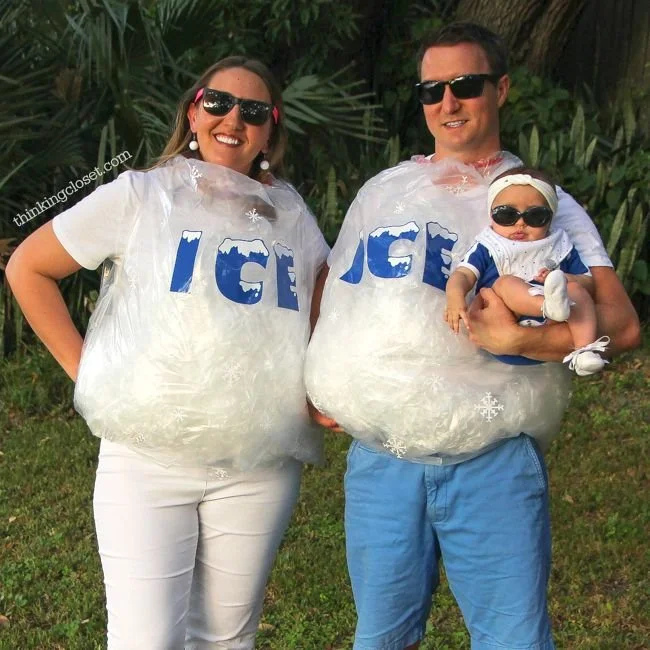 Nothing like a quippy Vanilla Ice throwback to get a good chuckle this Halloween. As a 90’s girl myself, I love a good cultural reference to a classic jam! If you’re a new family of 3, this is the perfect low-effort costume for your family and little one.